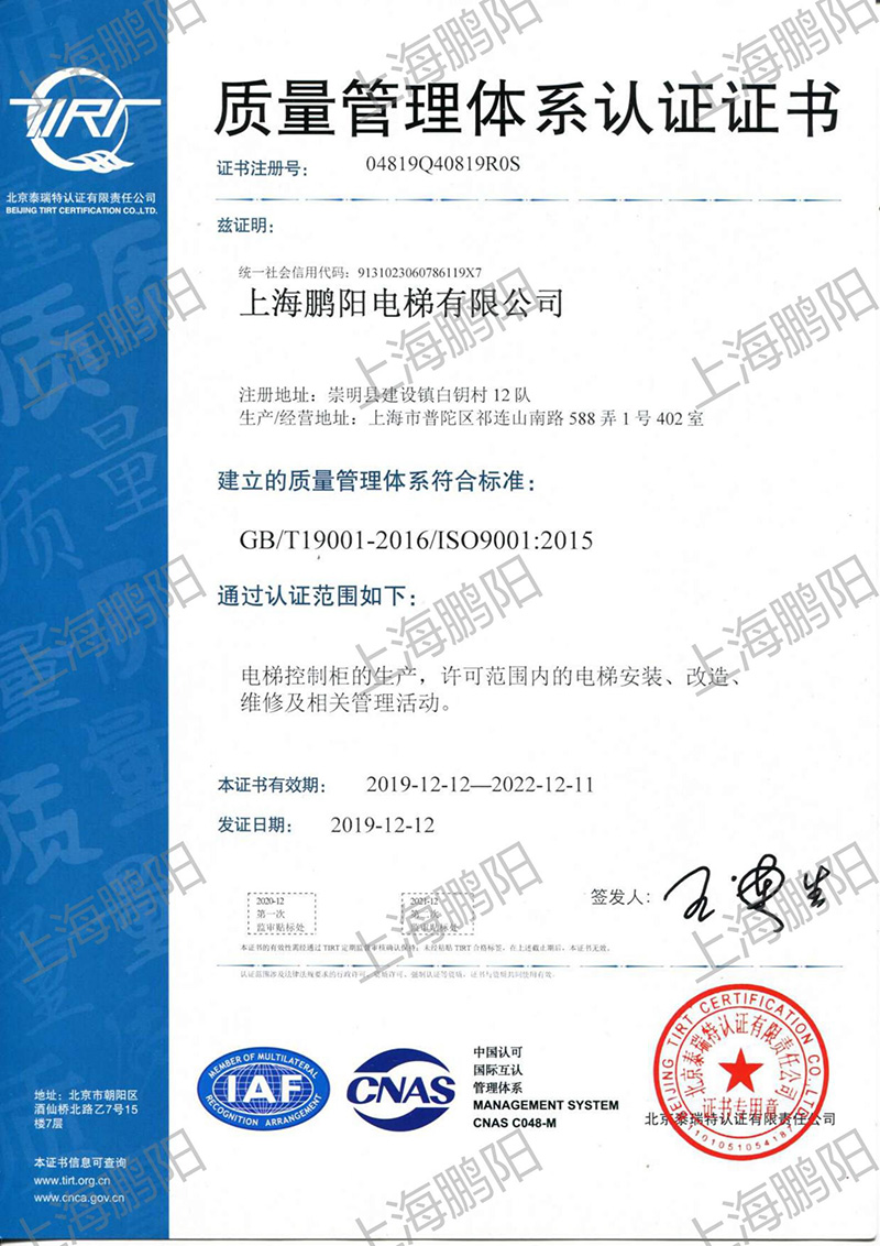 ISO 9001 质量管理体系认证证书